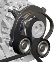 Dieses neuartige Spannsystem (Abbildung 8) funktioniert über eine mechanische Verbindung zwischen den Riemenscheiben auf beiden Seiten der Lichtmaschinenriemenscheibe. Wenn ein Teil des Riemens gespannt ist, wird der weniger gespannte Teil durch die Drehbewegung des Spanners sofort nachgespannt. Schauen wir uns an, wie es in den verschiedenen Betriebsarten funktioniert.