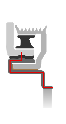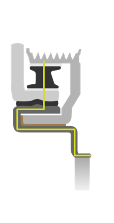 Under normal load the metal friction bearing is open, if load increases the bearing closes and makes the TVD a temporarily solid pulley. This protects the rubber which is not able to transfer the load.