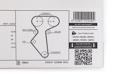You can easily use your smartphone to check whether you have bought a genuine Gates timing belt. New manufactured as of June 2023, our timing belt boxes will have an improved QR code on the label