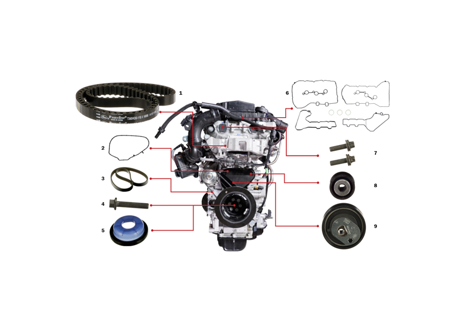 As well as belts, tensioners and idler pulleys, Gates kits include a crankshaft seal, as well as other seals, gaskets and bolts that must be replaced at the same time. These extras are essential. They guarantee that the engines are fully sealed.