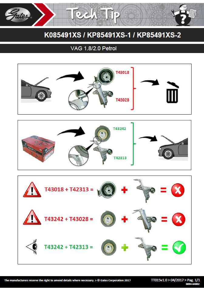 La modificación en cuestión supone un cambio de un sistema tensor hidráulico a un sistema tensor mecánico, lo que implica que —en algunas aplicaciones— los kits iniciales K03/KP3 y K04/KP45491XS de Gates se sustituirán por el nuevo kit K085491XS de Gates y los kits correspondientes con bomba de agua: KP85491XS-1 y KP85491XS-2.