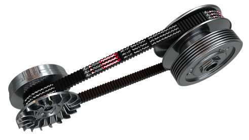 Por encima de los motores de 100 cc, Gates recomienda utilizar correas CVT reforzadas con compuesto de caucho reforzado con aramida y elementos de tracción de aramida extrafuertes para maximizar la aceleración, la resistencia a las cargas de choque y la vida útil.