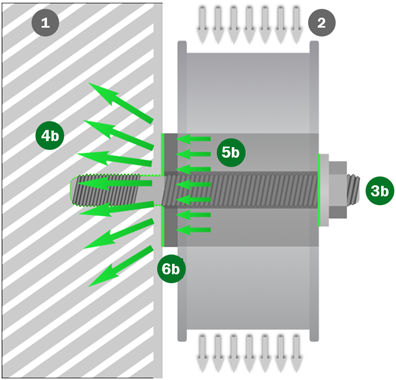 - La carga de la correa (2) se transfiere directamente al vástago del perno. (5a)