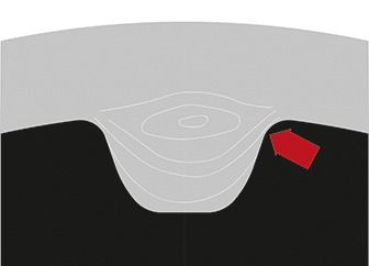 La charge des courroies crantées curvilignes est appliquée à la base des dents, ce qui démontre clairement qu'une rainure sur la dent n'a aucune incidence sur les performances de la courroie, car elle est située dans une partie qui subit un effet de torsion minimal. En théorie, la dent avec rainure est plus silencieuse que la dent sans, car l'air dans les creux des poulies peut s'échapper plus facilement par la rainure. Toutefois, le conducteur de la voiture ne remarquera pas la différence car le bruit de la courroie est complètement couvert par le bruit du moteur à combustion. En conclusion, les mécaniciens automobiles peuvent monter en toute sécurité la courroie de rechange avec des dents arrondies, même s'ils viennent de retirer une courroie de distribution avec une rainure.