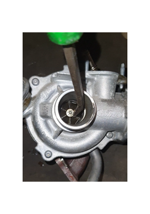 De magneetkleppen van de variabele kleptiming (VVT) moeten samen met de turboolietoevoerleiding, de bevestigingsbout en de banjo-aansluitingen worden verwijderd en gecontroleerd op vervuiling van de riem. Als er vuil aanwezig is, wordt vervanging van de VVT-solenoïden aanbevolen. Reinig indien nodig de toevoerleidingen en aansluitingen van de turboolie. Het vervangen van afdichtingen wordt aanbevolen.