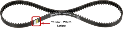 Gates NOWE paski Belt-In-Oil posiadają żółto-białe oznaczenie z tyłu paska. Oznaczenia te są wymagane w procesach produkcyjnych. Należy pamiętać, że oznaczenia te nie mają nic wspólnego z instalacją (NIE JEST TO ZNAK ROZRZĄDU !!!).